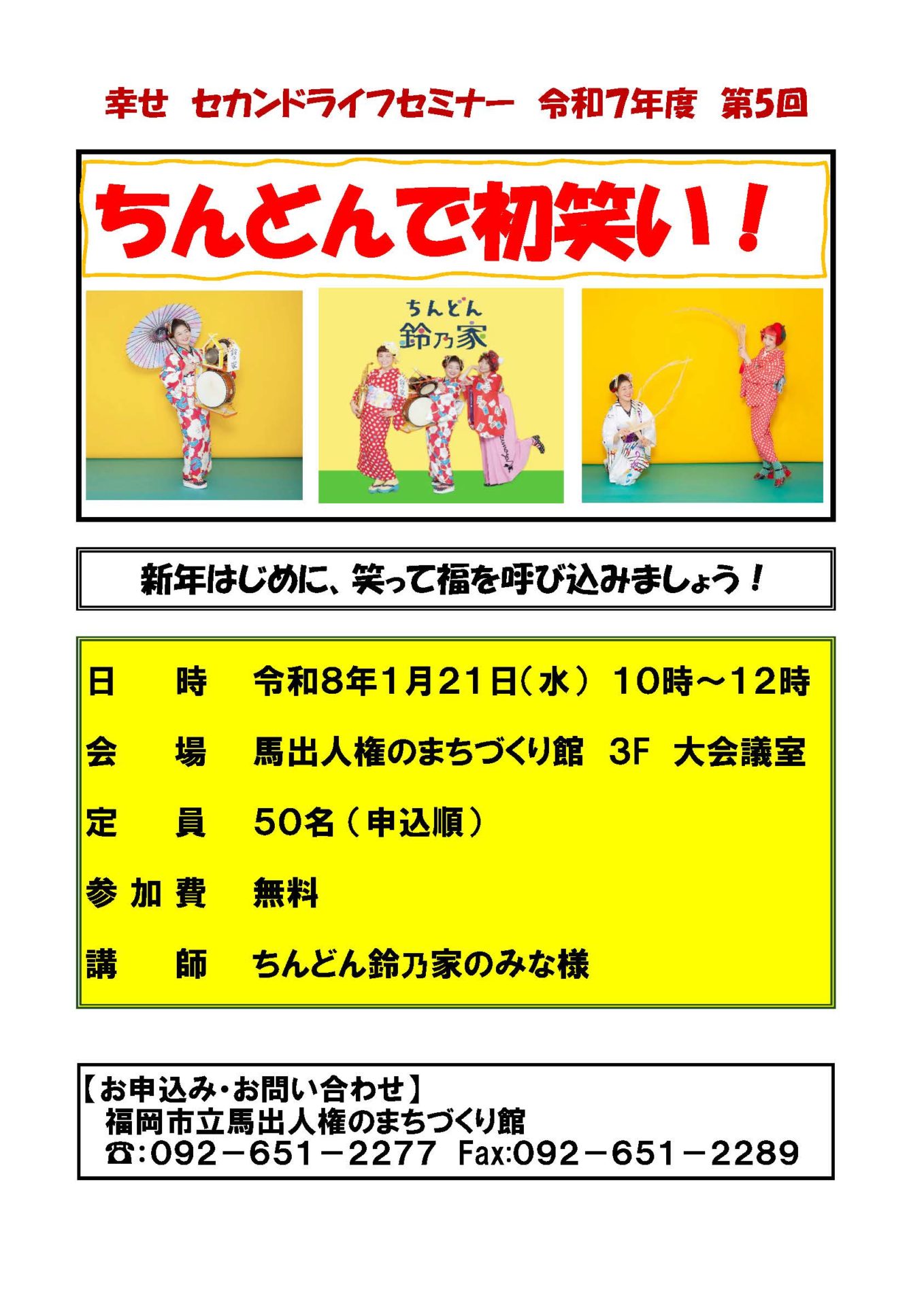 第5回セカンドライフセミナー 2026年1月21日 馬出公民館福岡県福岡市東区馬出1丁目12-33場所を表示 馬出公民館福岡県福岡市東区馬出1丁目12-33場所を表示マップ 馬出公民館 Google カレンダーに戻る