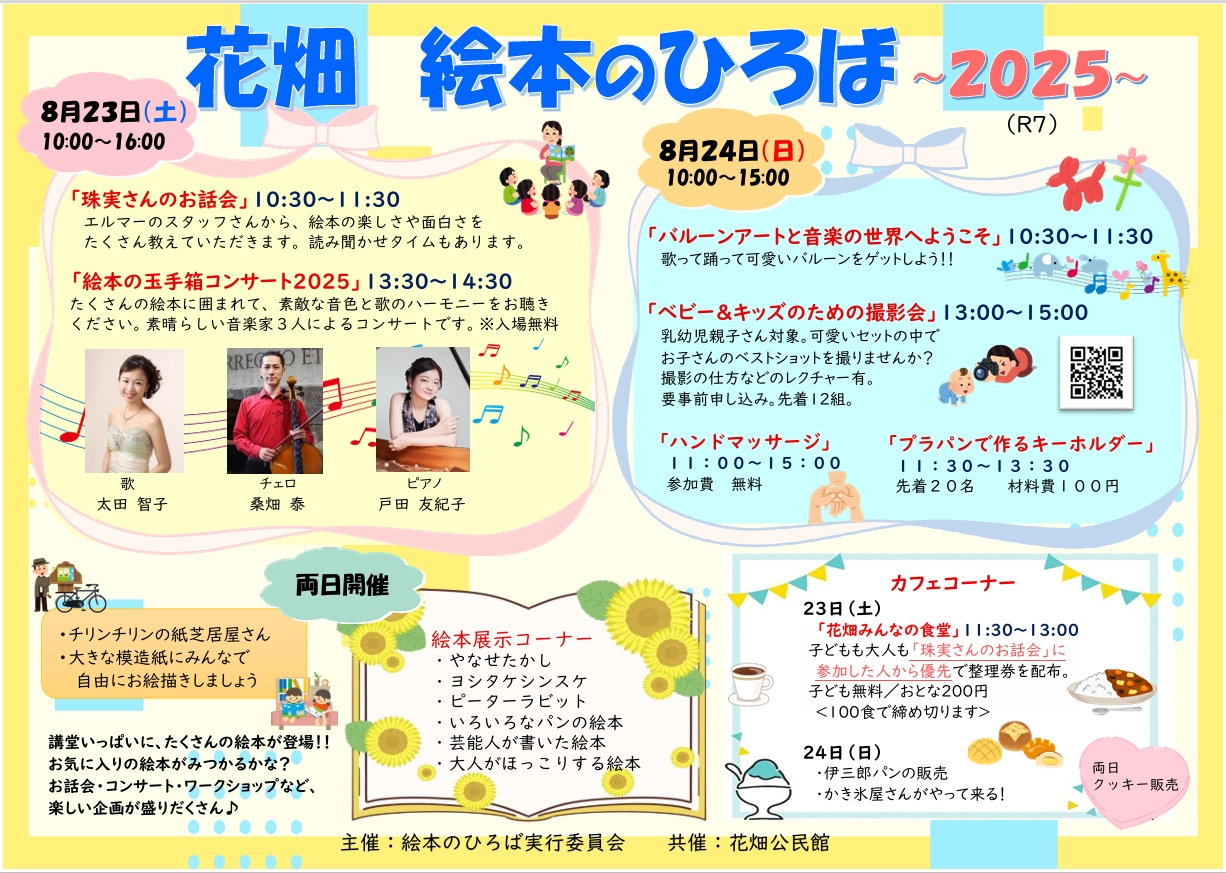 イベント詳細Event カテゴリー: ザ・スタッカーツ 花畑 絵本のひろば2025 花畑 絵本のひろば2025 AM 10:30 – AM 11:302025年8月24日 8/24(日)10:30~11:30 「バルーンアートと音楽の世界へようこそ」 花畑公民館 福岡市花畑公民館ブログ: 2025 花畑公民館福岡市南区花畑3-35-6場所を表示 花畑公民館福岡市南区花畑3-35-6場所を表示マップ 花畑公民館 Google カレンダー カレンダーに戻る 波多江サマーコンサート 2025年8月24日 みんなで楽しむ!さくらんぼ音楽会 2025年8月26日